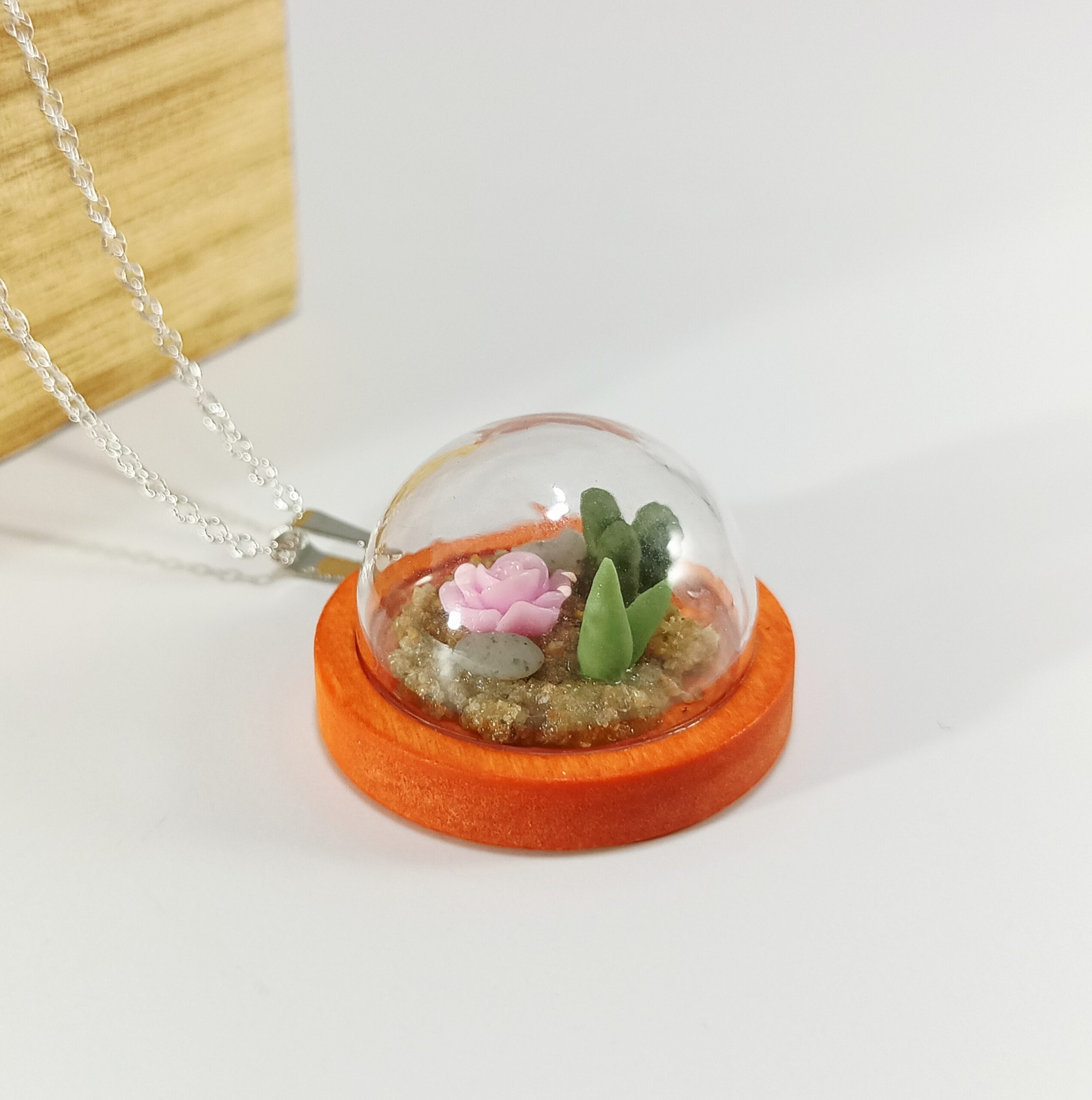 Each terrarium is hung on a 22″ gold plated chain with lobster clasp.