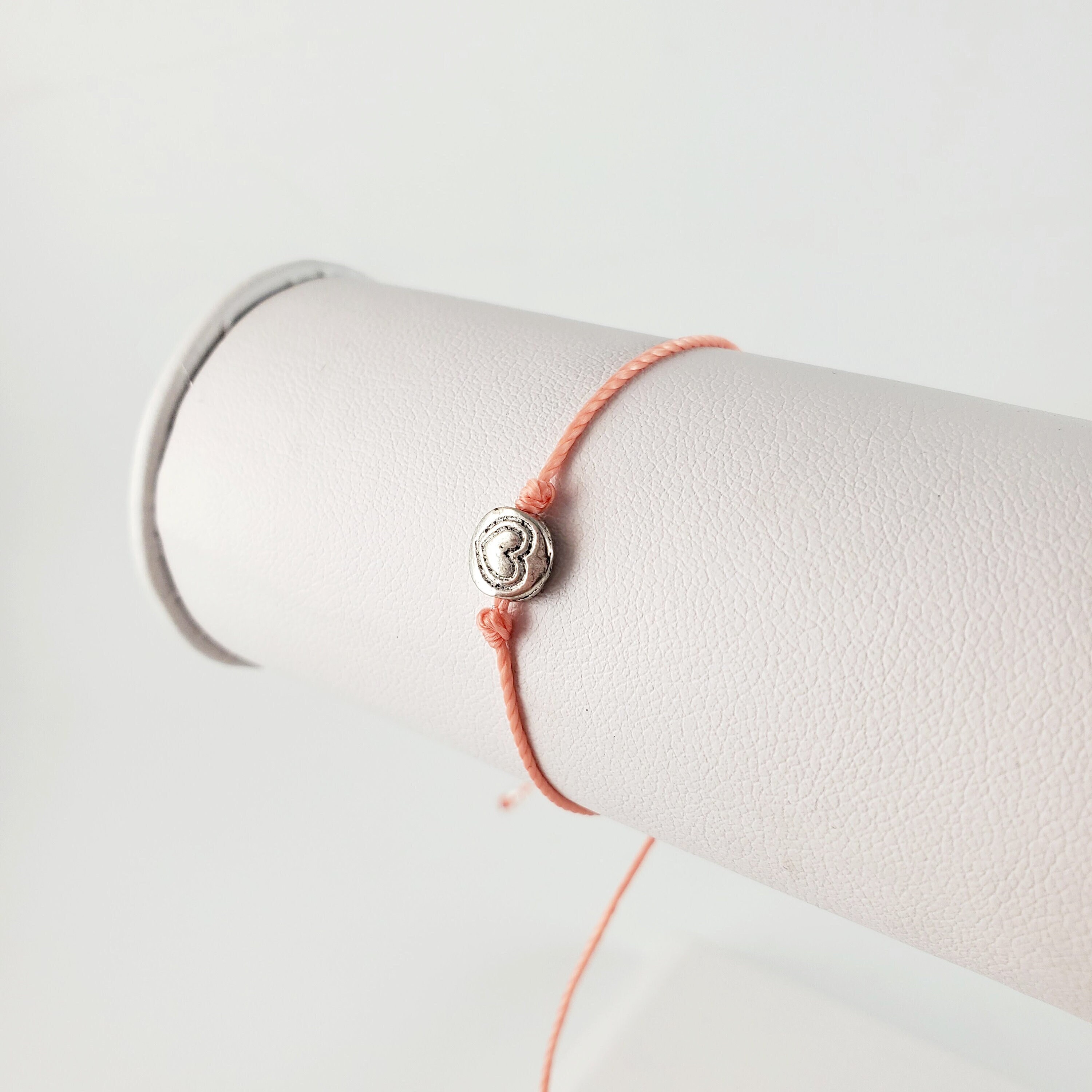 This listing is for one orange string with silver heart adjustable bracelet.