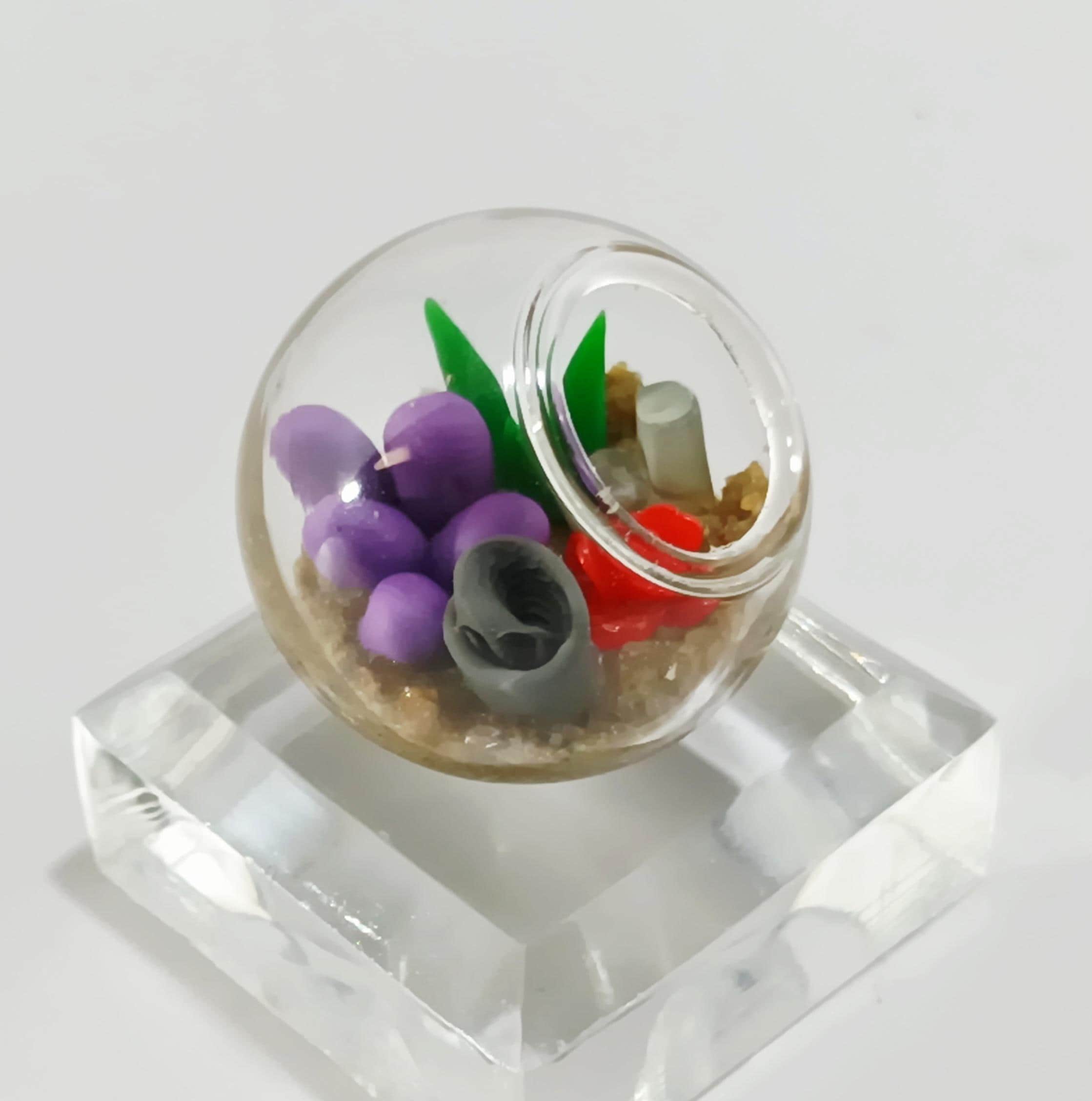 This glass micro terrarium (less than an inch!) features hand-sculpted clay plants nestled in real hardened sand for lasting stability. Each plant is lovingly handmade from polymer or air-dry clay—a real forever garden.