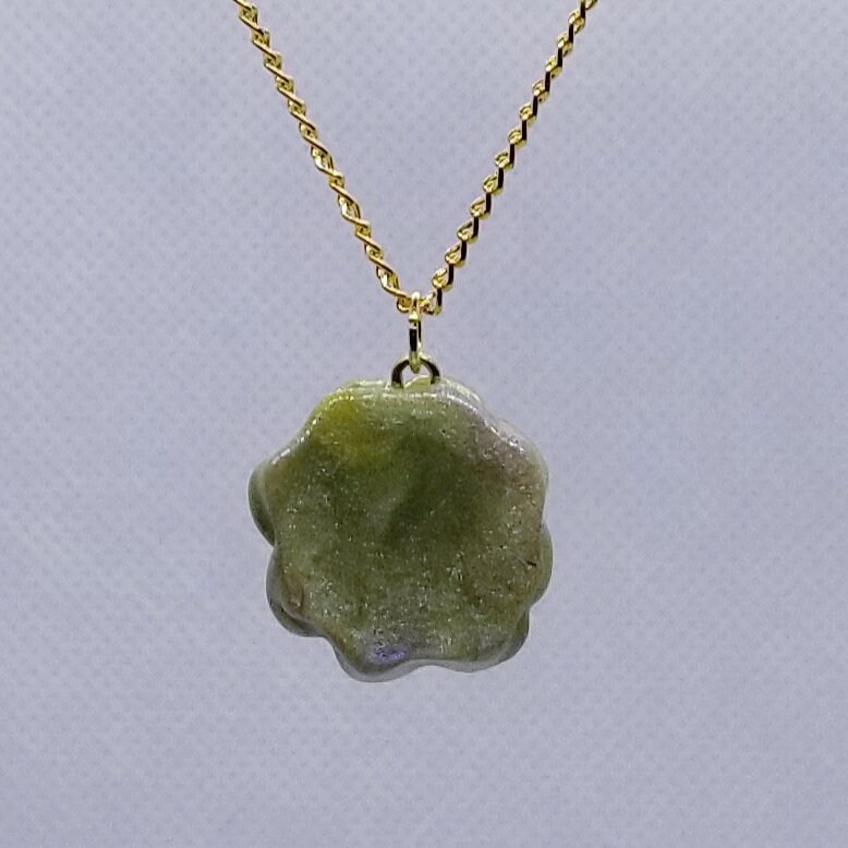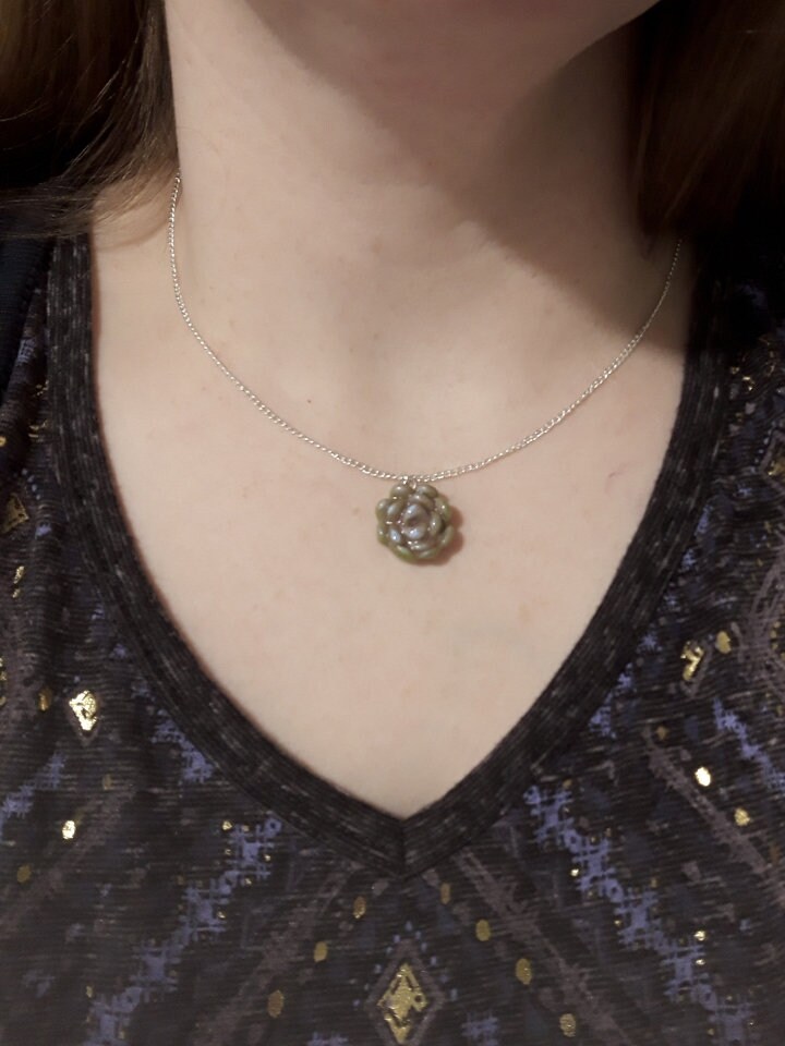 Beautiful 1 inch handmade resin glazed clay succulent charm on an 18" high grade stainless steel chain. You will receive the one in the picture.