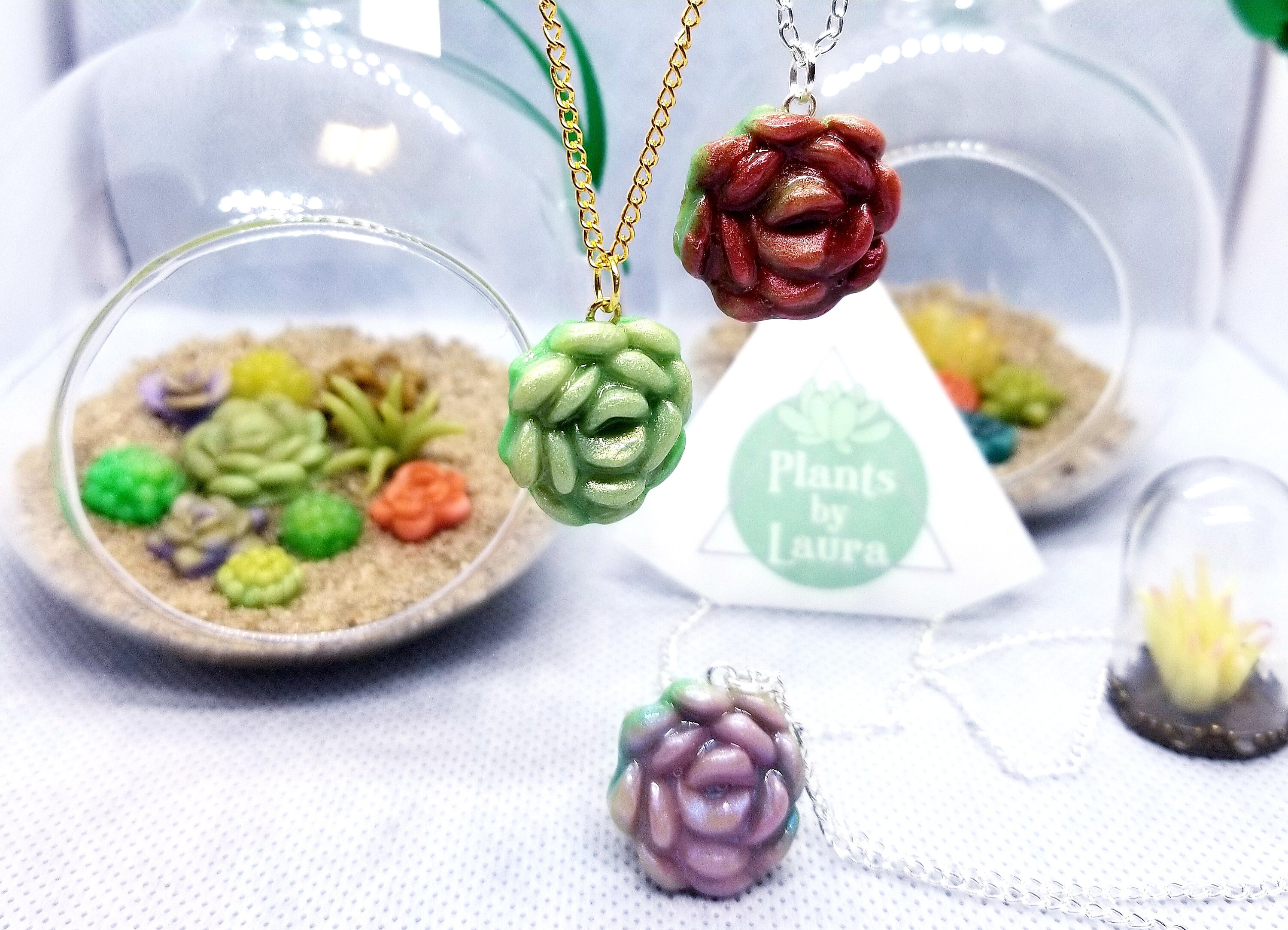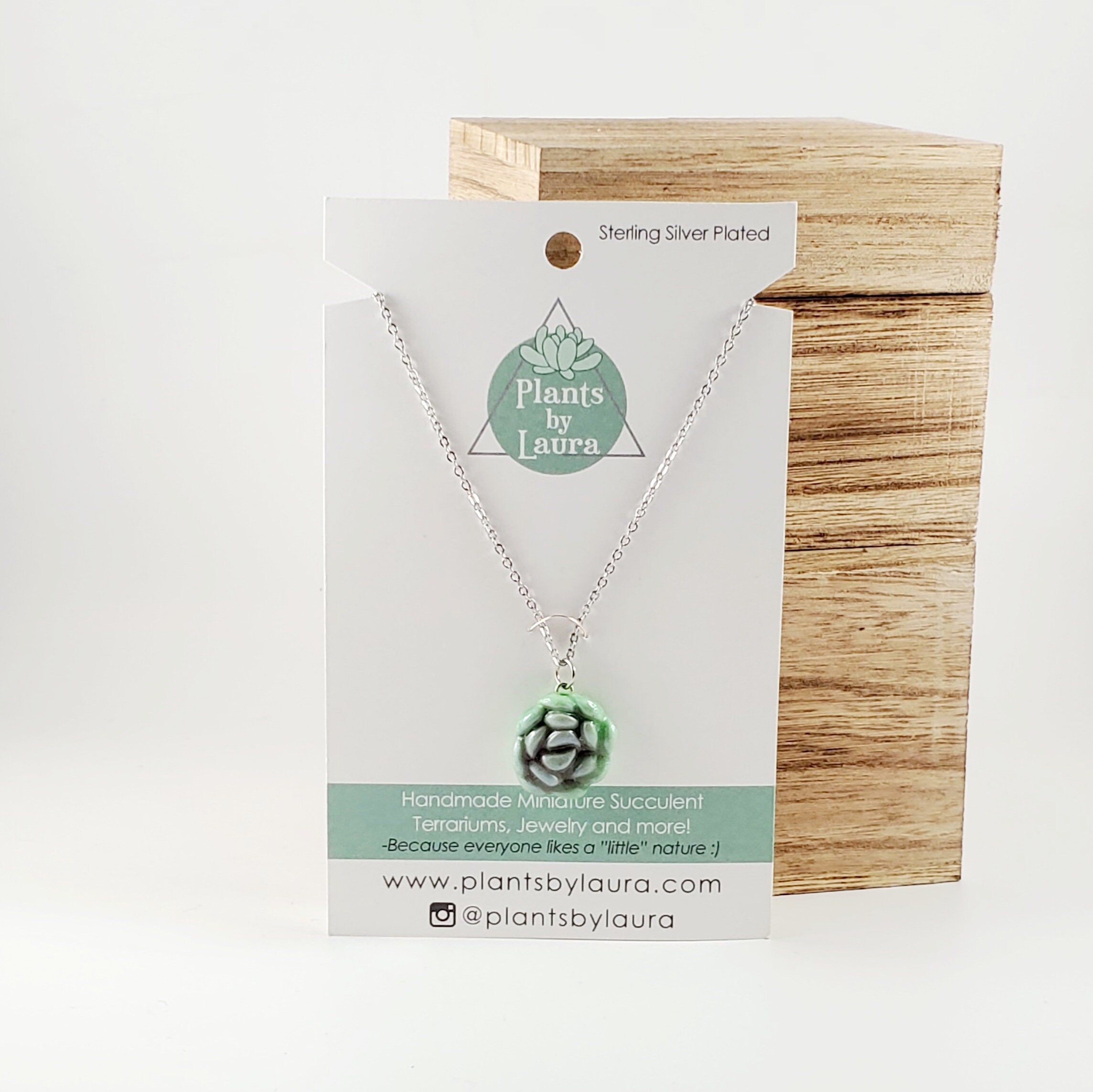 Handmade Clay Succulent Necklace: Stainless Steel Chain, Nature Gift