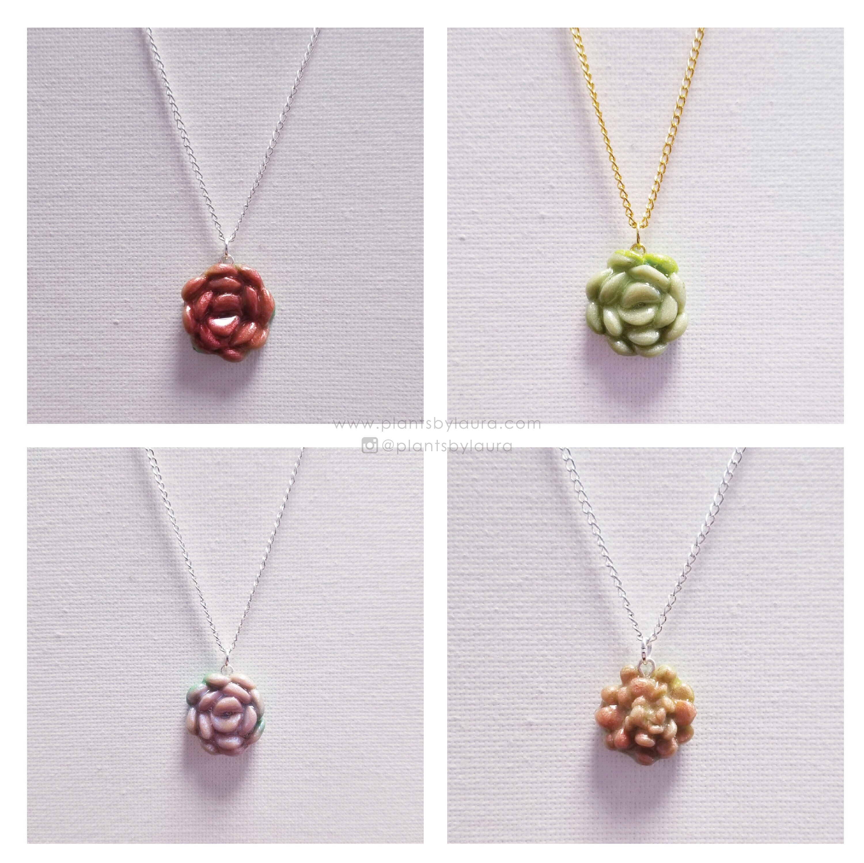 Beautiful 1 inch handmade resin glazed clay succulent charm on an 18" high grade stainless steel chain. You will receive the one in the picture.