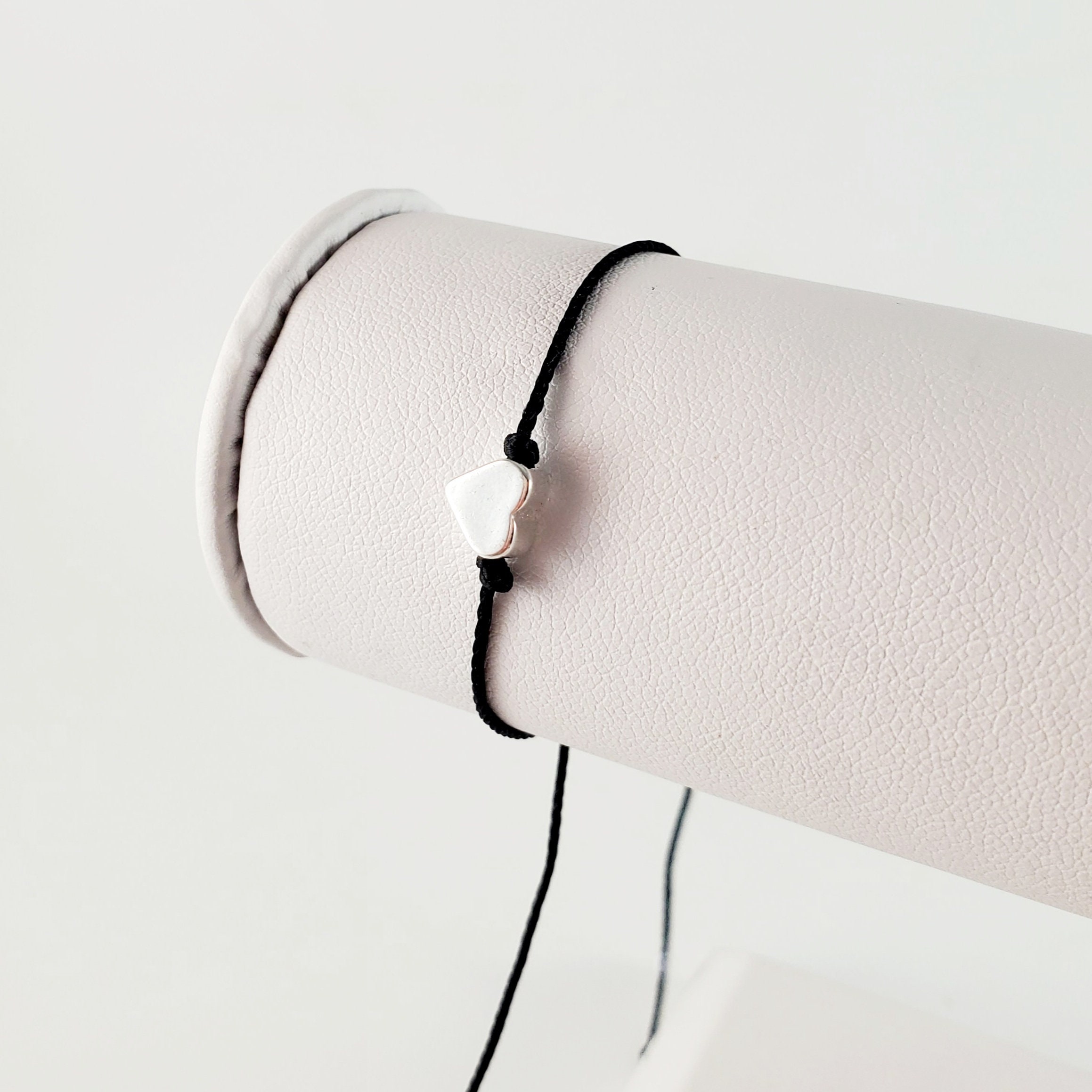 This listing is for one black string with silver heart adjustable bracelet.